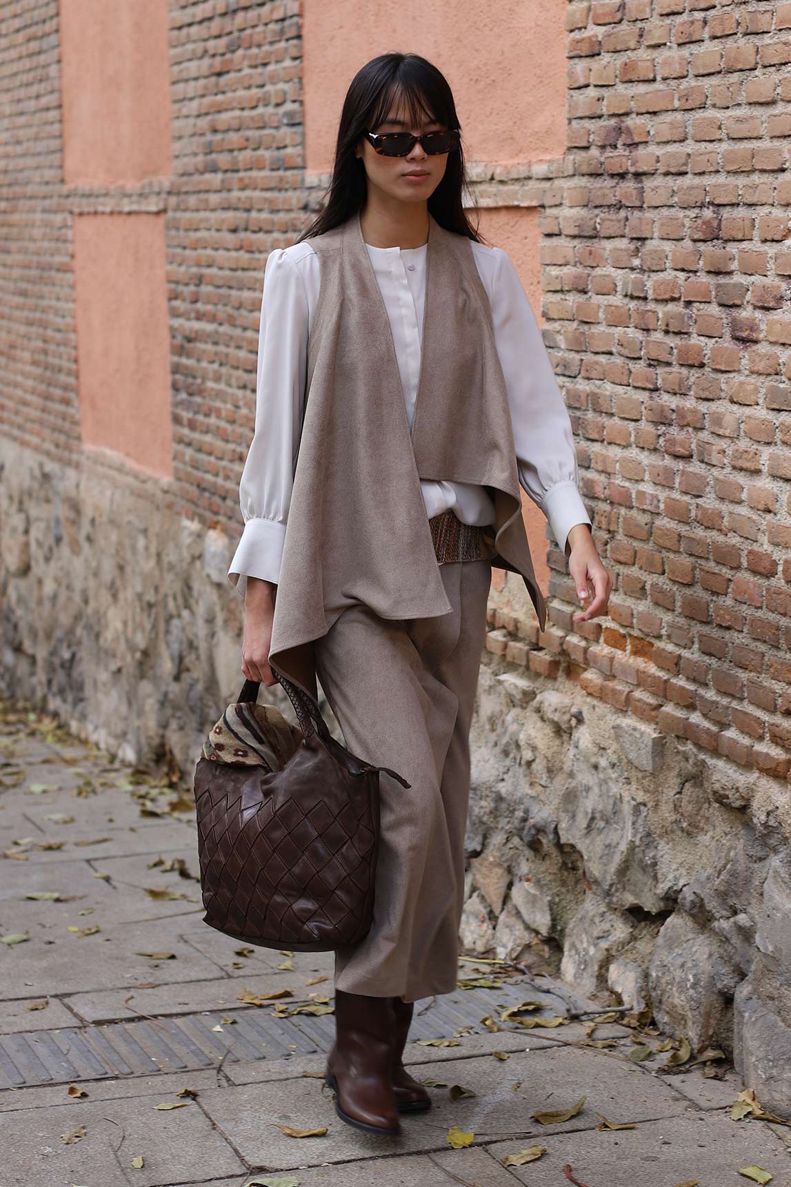 El chaleco Varenna en color arena claro es un fondo de armario que aporta calidez y sofisticación instantánea. Su silueta abierta y la fluidez del tejido lo convierten en una pieza versátil para crear capas elegantes tanto de día como de noche.