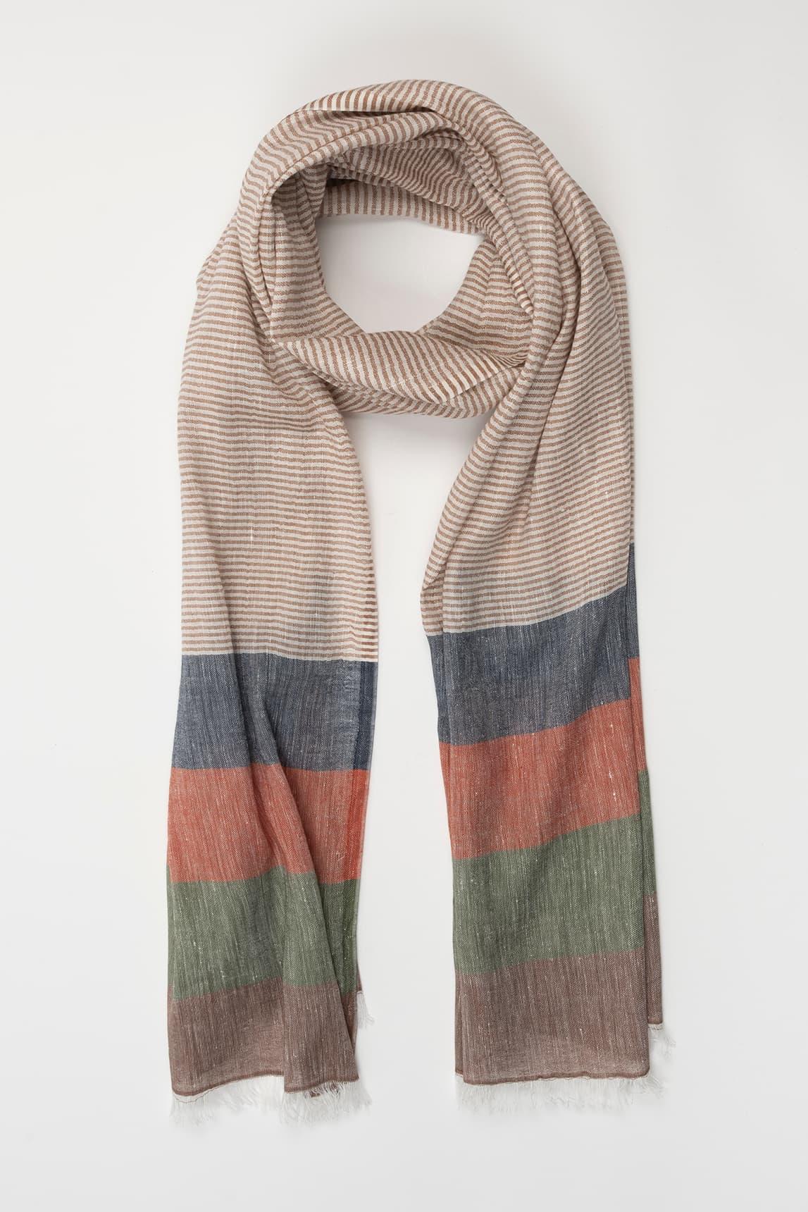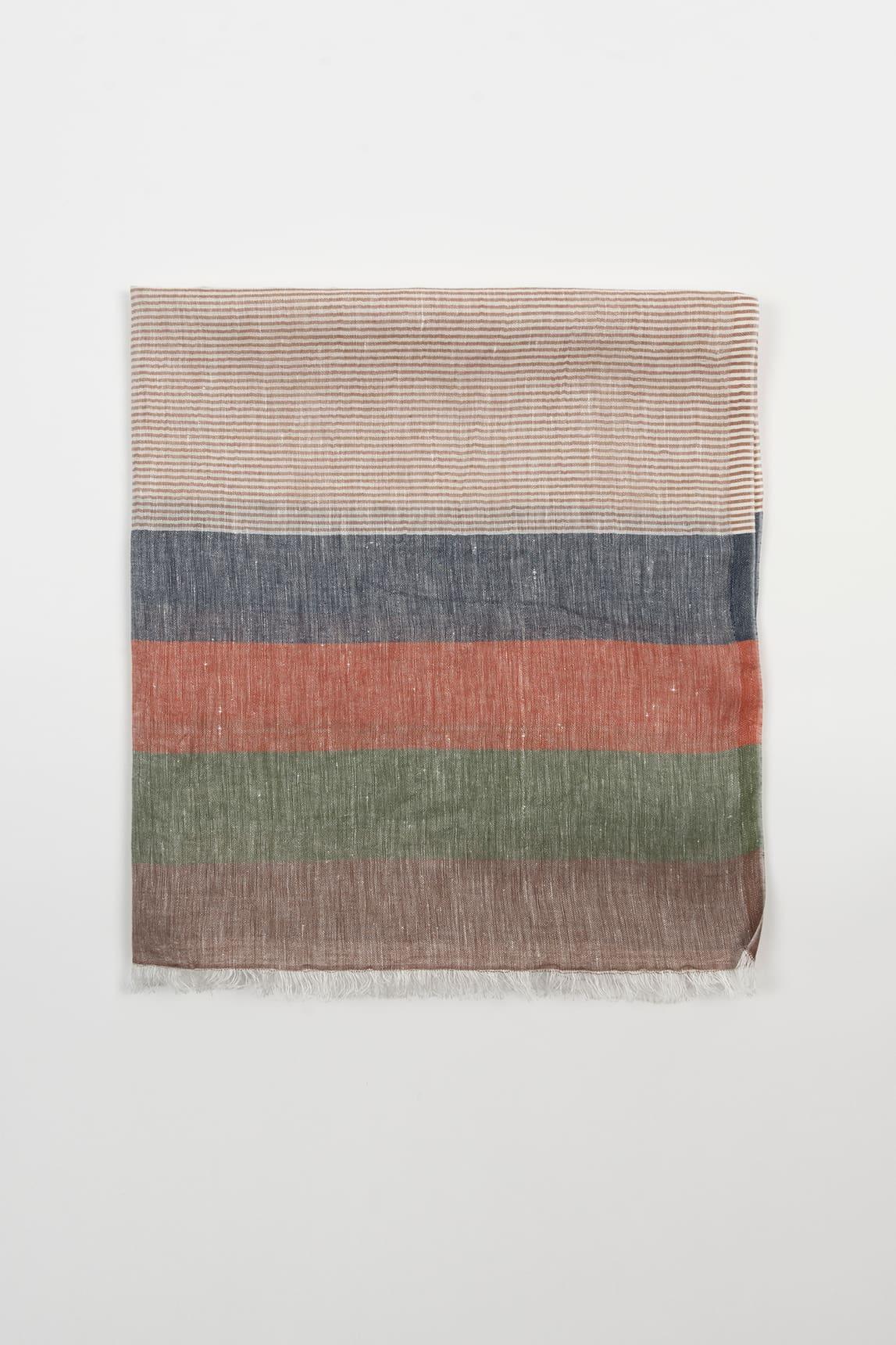 Fular de mujer confeccionado en una mezcla natural de 59 % lino y 41 % algodón. Su tejido fresco y transpirable combina franjas anchas en tonos tierra, verde, azul y coral, con un efecto ligeramente jaspeado que realza la textura natural del material. Los bordes deshilachados aportan un acabado artesanal y relajado. El Fular Elva multicolor es una pieza versátil que equilibra color y naturalidad. Ideal para los meses cálidos, añade un toque de frescura y estilo a conjuntos neutros o de inspiración veraniega. Su composición en lino y algodón garantiza ligereza, suavidad y comodidad durante todo el día. Nos esforzamos por mostrar los colores de la forma más fiel posible, pero pueden variar ligeramente respecto a la realidad.