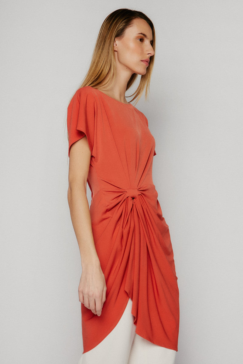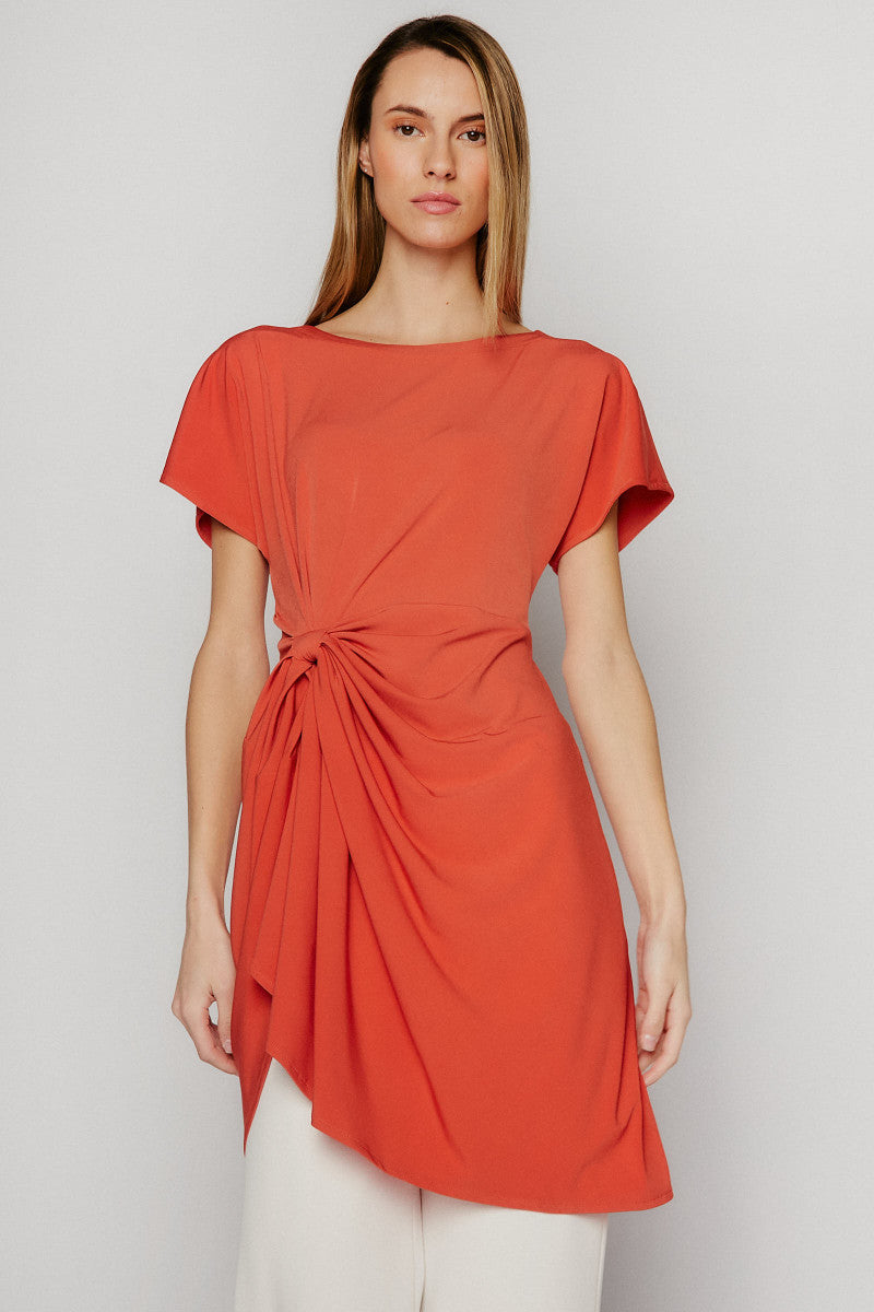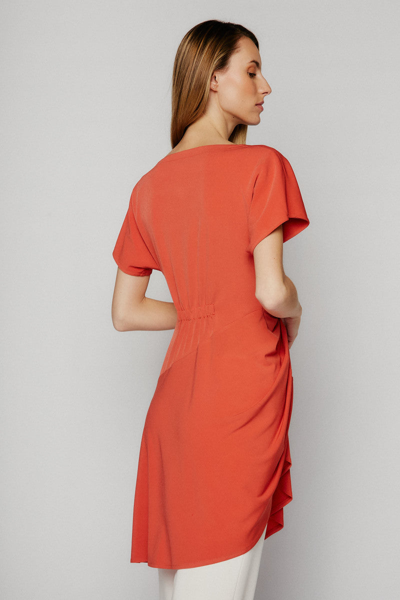 Discover the elegant and flattering Isabel de Rivera top. The gathered back accentuates your silhouette, while the front features a ruched detail on the side. Made with a slightly stretchy fabric for added comfort. Perfect for any occasion.