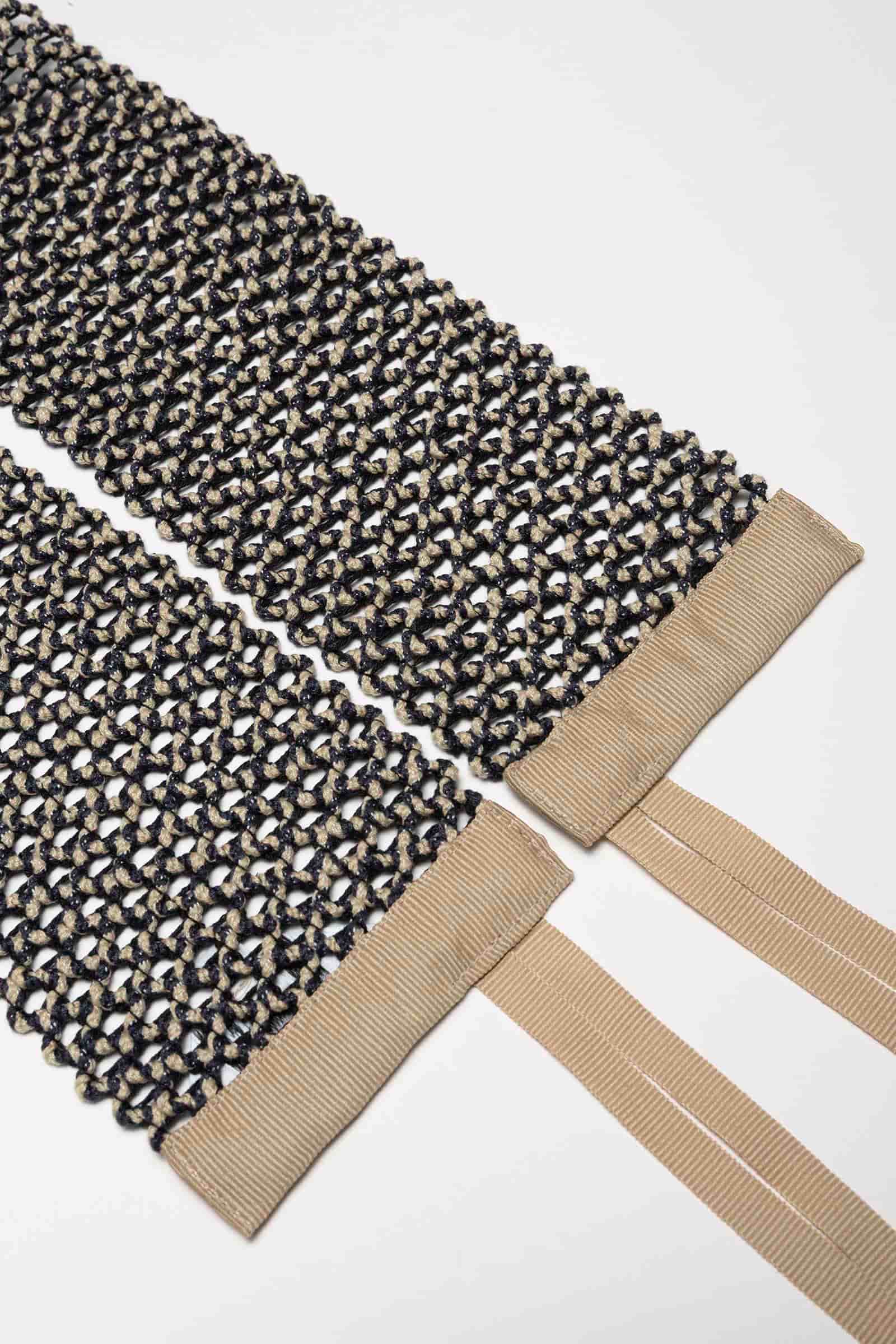 Enhance your outfit with our Dresden sash, crafted from a gray crisscross fabric with ecru accents. The beige ribbon adds elegance and warmth to your waist, while the delicate bow completes the look with sophistication. Whether for everyday wear or for special occasions, this sash is the perfect accessory to enhance your figure with style.