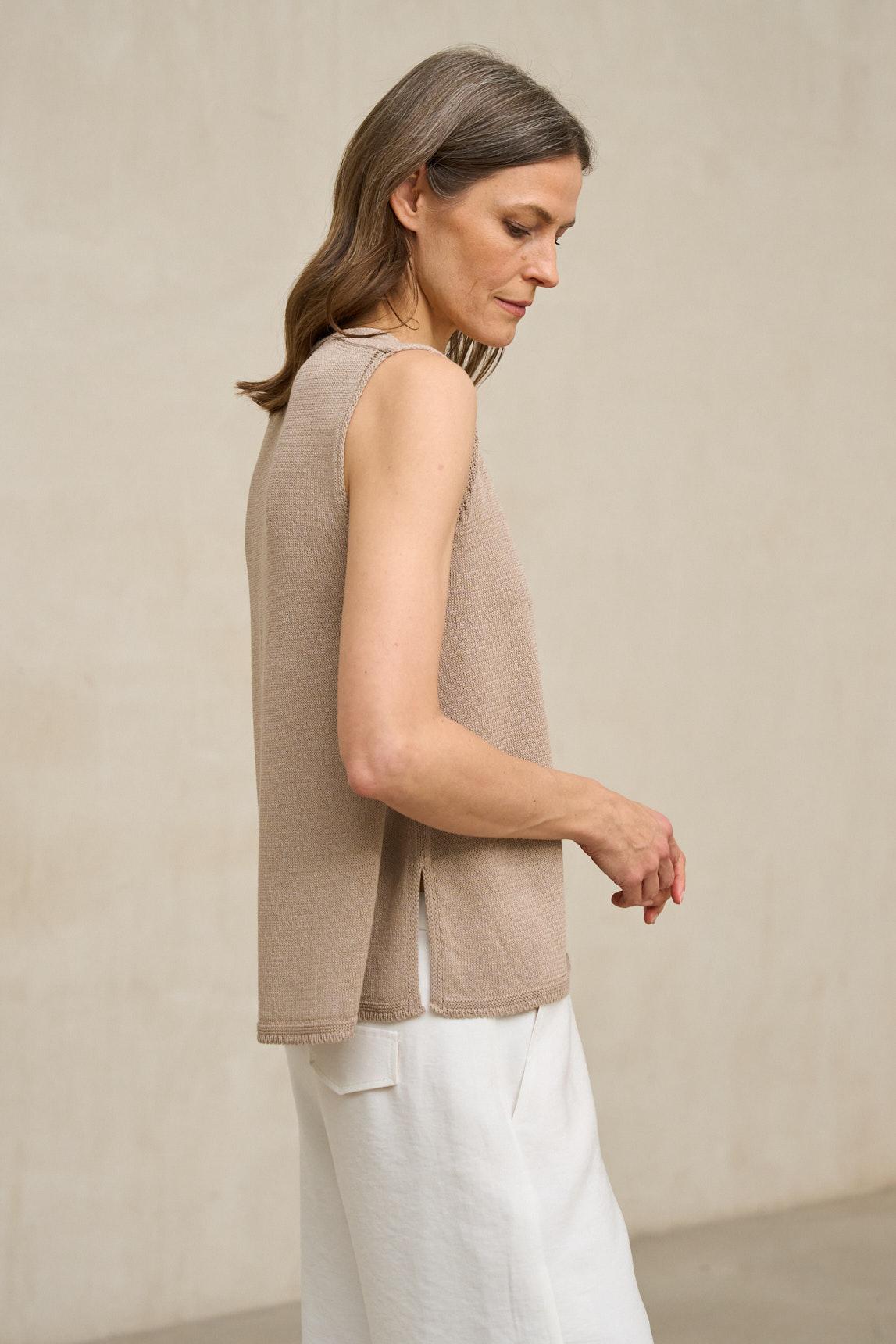 El top de punto Virel arena es una prenda minimalista de líneas limpias que destaca por su silueta depurada y su caída natural. Confeccionado en tejido de punto ligero y suave, presenta escote en pico y diseño sin mangas que estiliza el torso con discreción. Su corte recto y fluido permite que la prenda se adapte al cuerpo sin ceñir, aportando comodidad y equilibrio visual. El tono arena, cálido y luminoso, encaja perfectamente dentro de la paleta neutra de la colección y combina con facilidad con crudos, blancos rotos, camel, verde oliva o gris antracita. Ideal como top base para estilismos monocromáticos o como pieza versátil dentro de conjuntos más estructurados, el top de punto Virel arena es una prenda pensada para primavera y verano. Aporta serenidad, sencillez y coherencia al armario diario. Nos esforzamos por mostrar los colores de la forma más fiel posible, pero pueden variar ligeramente respecto a la realidad.