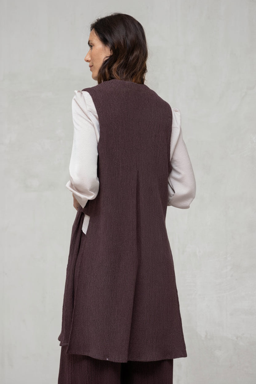 El Chaleco Siena burdeos es una prenda versátil que combina estilo y funcionalidad. Su diseño minimalista y su color lo convierten en un básico perfecto para dar un toque sofisticado a tus looks de entretiempo. Puedes llevarlo en outfits casuales o más formales, jugando con diferentes capas y accesorios.