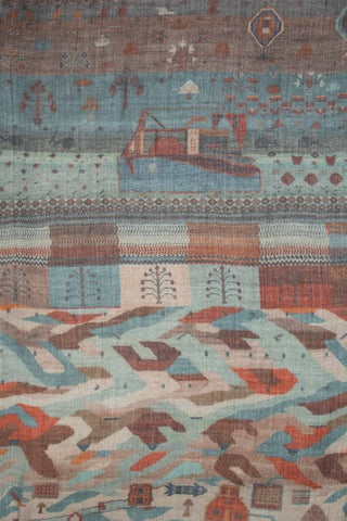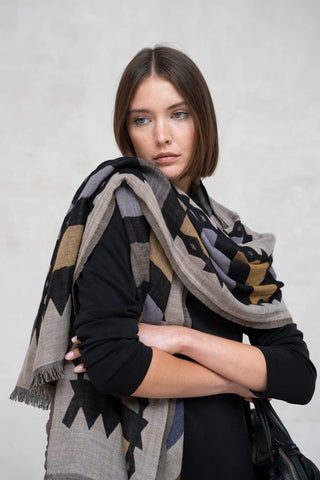 FULAR ZIG-ZAG MARRÓN GRIS Y MOSTAZA