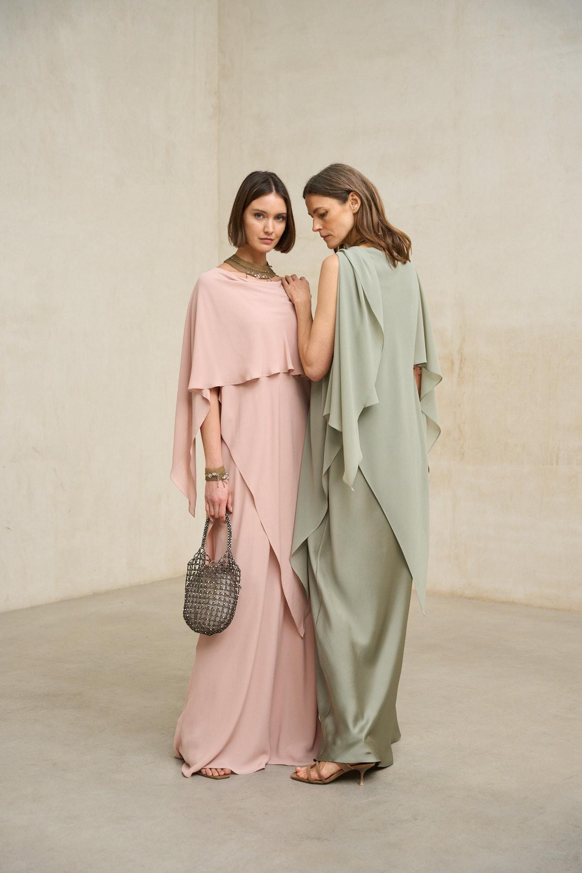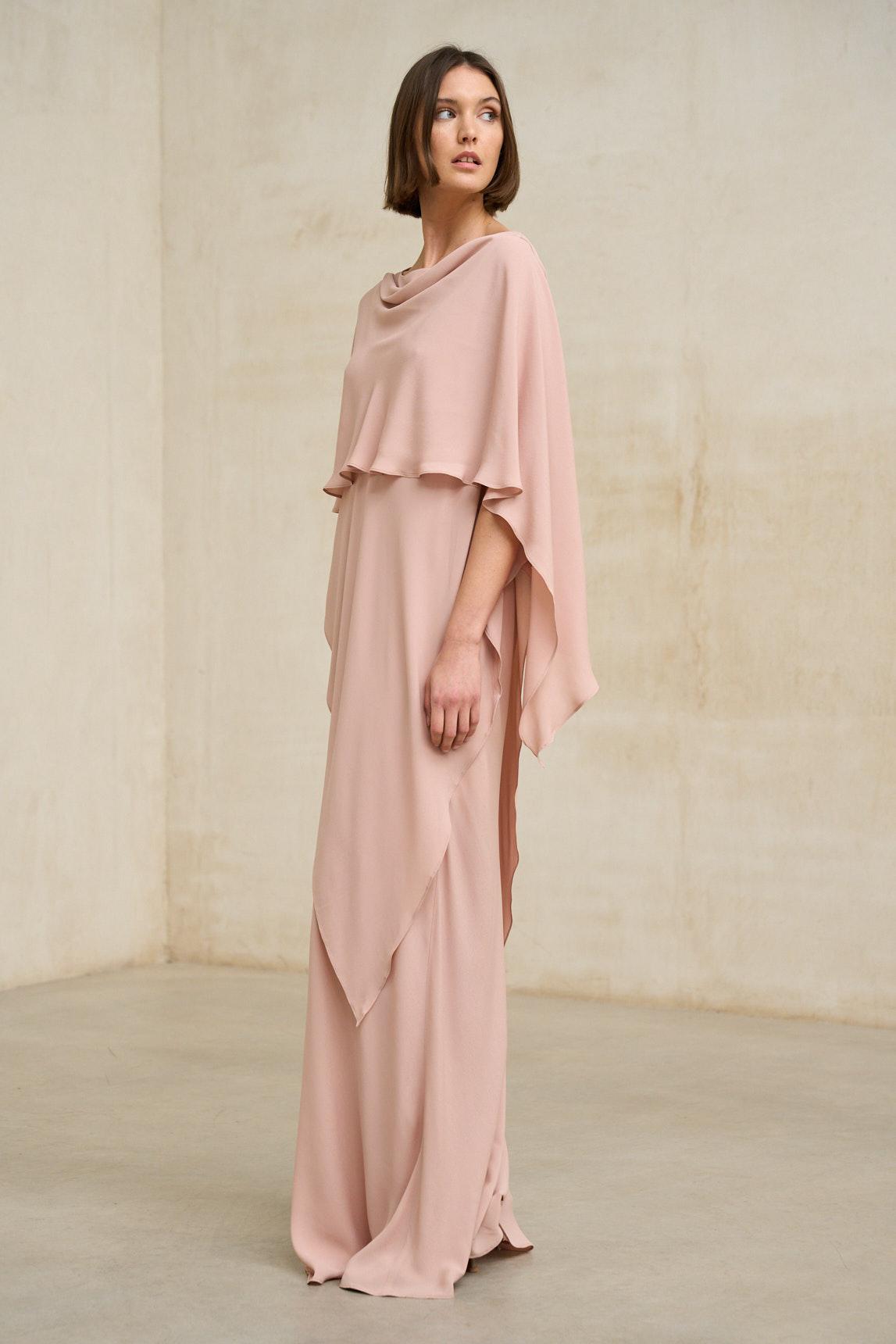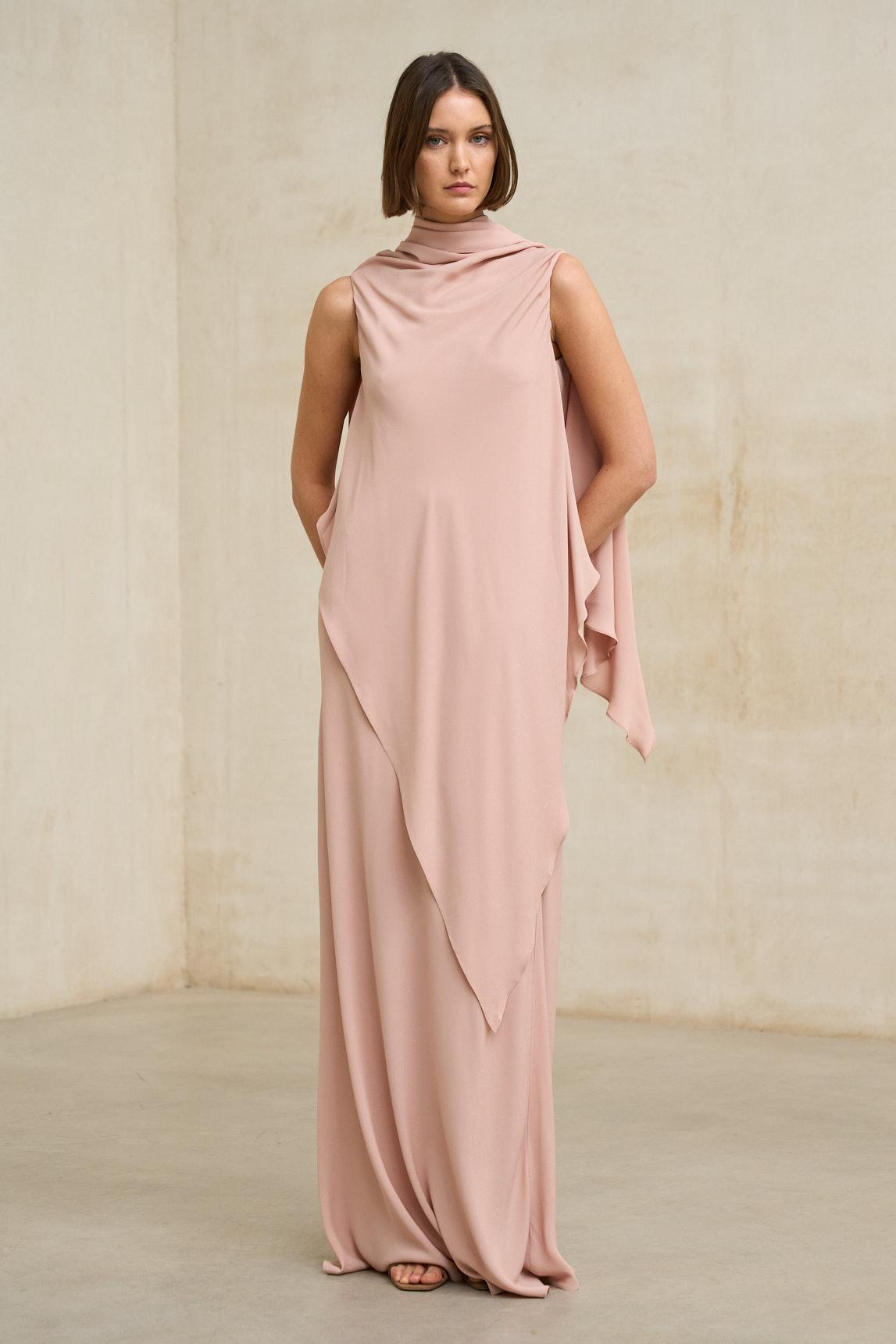 El vestido Kaedryn rosa empolvado es una pieza de invitada sofisticada y contemporánea diseñada para eventos especiales. Su silueta fluida y alargada estiliza la figura con una caída limpia y elegante, mientras que su tono rosa suave aporta luminosidad y delicadeza. El diseño incorpora una capa integrada que puede colocarse de distintas maneras: suelta sobre los hombros, cruzada tipo fular o envolviendo ligeramente los brazos. Este detalle móvil transforma el vestido y permite adaptar el estilismo según la ocasión, aportando dinamismo y personalidad. Su estructura minimalista equilibra el protagonismo de la capa, creando un conjunto armonioso ideal para bodas, bautizos, comuniones o celebraciones formales. Una propuesta femenina, versátil y muy estilosa que combina sencillez y efecto. Nos esforzamos por mostrar los colores de la forma más fiel posible, pero pueden variar ligeramente respecto a la realidad.