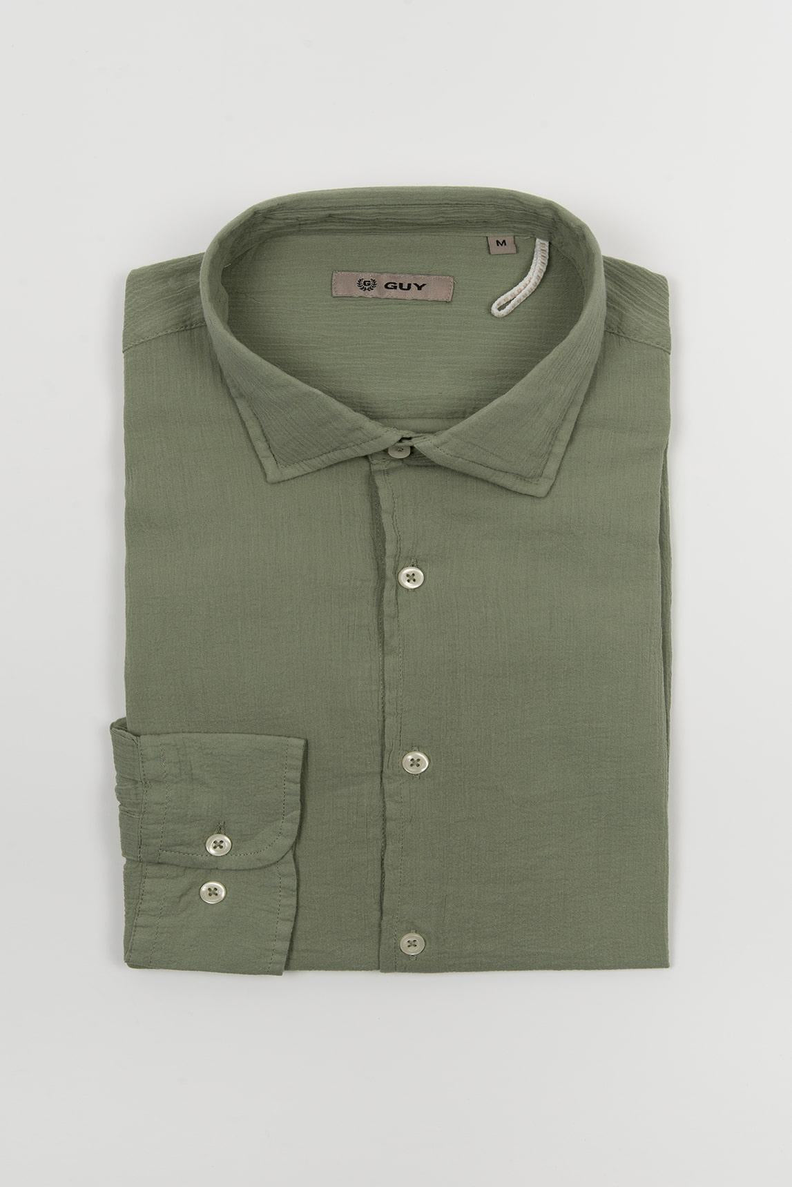 La camisa GUY en color verde caqui destaca por su diseño limpio y contemporáneo, perfecta para quienes buscan una prenda versátil y cómoda con un estilo natural y actual. Confeccionada en algodón ligero con textura suave y ligeramente arrugada, ofrece una sensación fresca y transpirable ideal para el día a día o para los meses más cálidos.