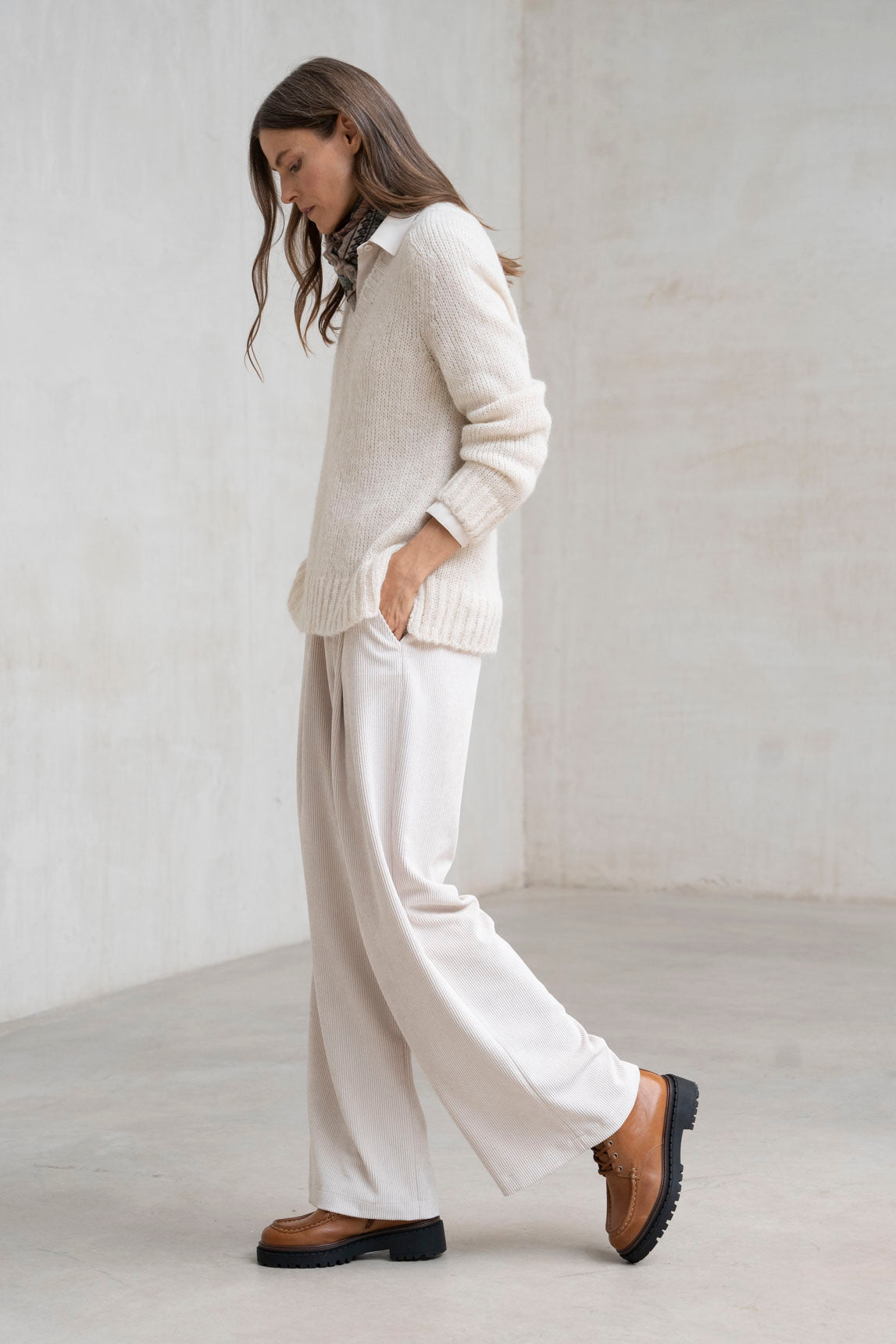 El jersey Specco crudo es la prenda perfecta para añadir calidez y estilo a tus looks de otoño e invierno. Su diseño con cuello pico estiliza el cuello y permite lucir camisas o blusas debajo, aportando un toque sofisticado. Confeccionado en un tejido suave y esponjoso, ofrece una sensación de confort envolvente, ideal para el día a día o para ocasiones más relajadas. Su color neutro facilita la combinación con cualquier paleta, convirtiéndolo en un básico atemporal de tu armario.