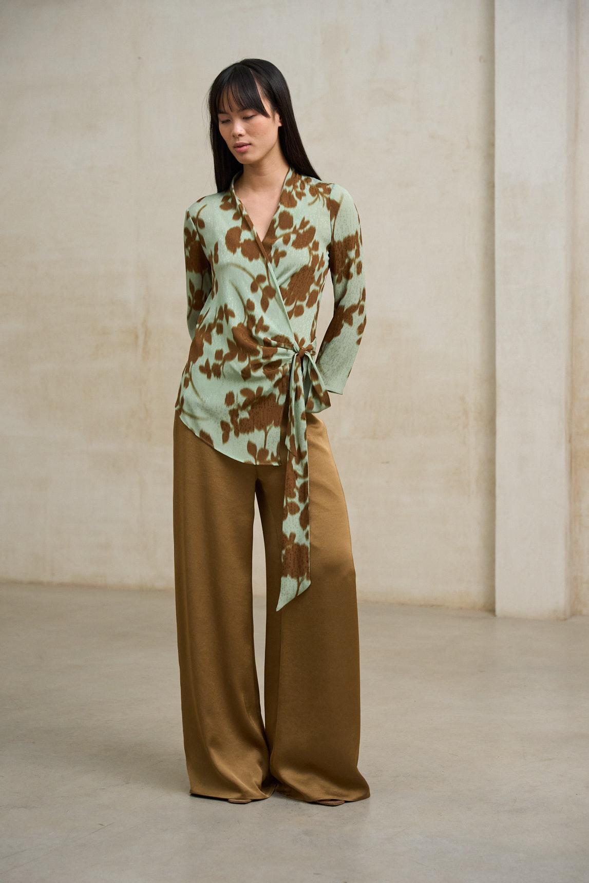 La Blusa Lioris estampado es una prenda fluida de inspiración natural que combina un diseño relajado con un estampado orgánico en tonos verde salvia, crudo y matices tierra. Su patrón artístico aporta personalidad sin resultar excesivo, manteniendo un equilibrio elegante y atemporal. Presenta escote en pico y manga corta ligeramente amplia, con una caída suave que acompaña el movimiento y estiliza la silueta sin ceñir.