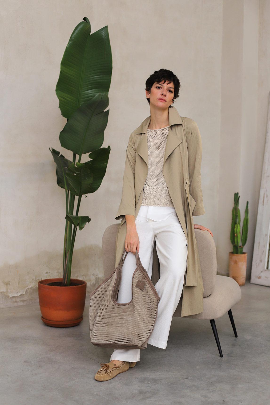 Un modelo perfecto para estilismos neutros, total looks claros o combinaciones en tonos arena y marfil.