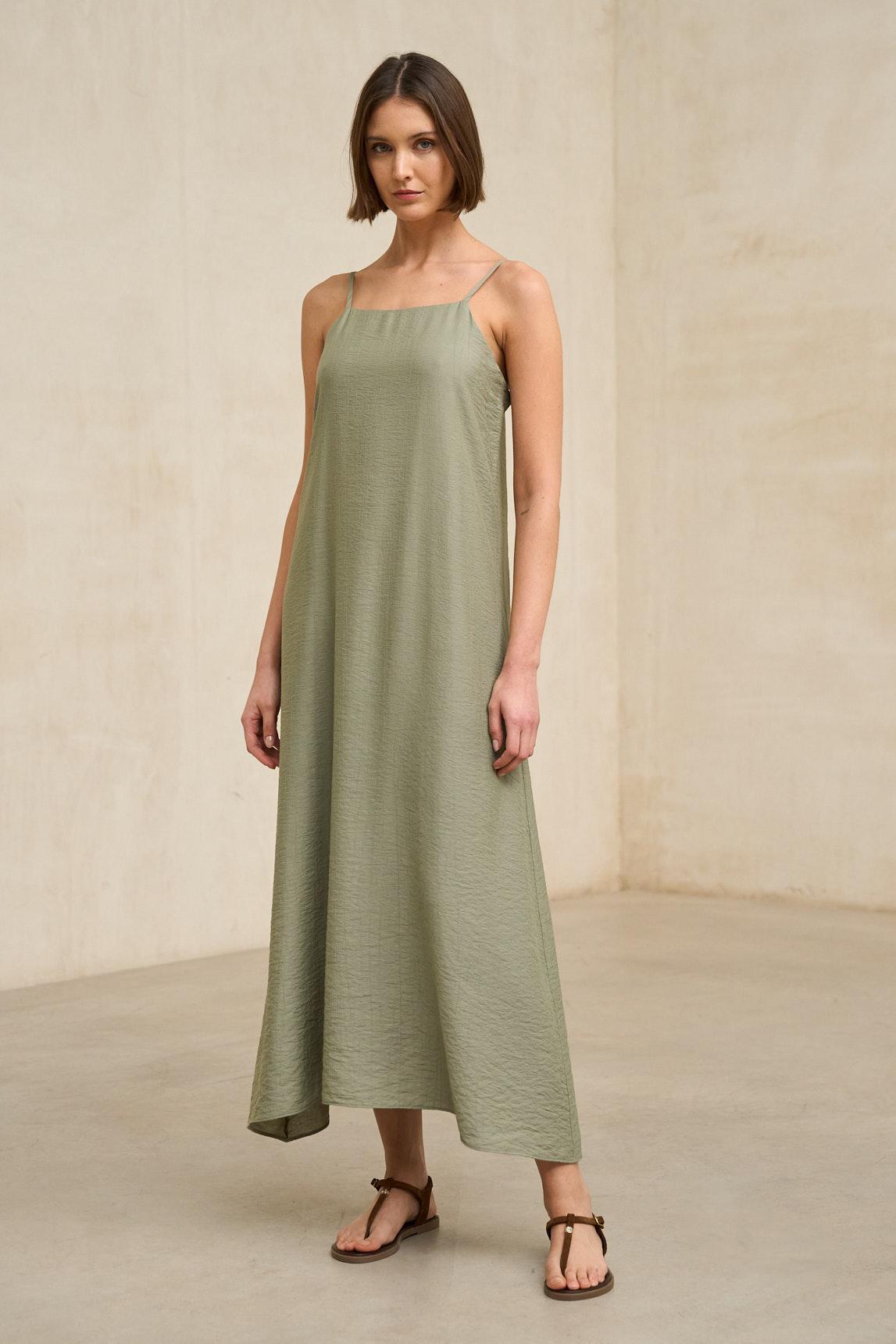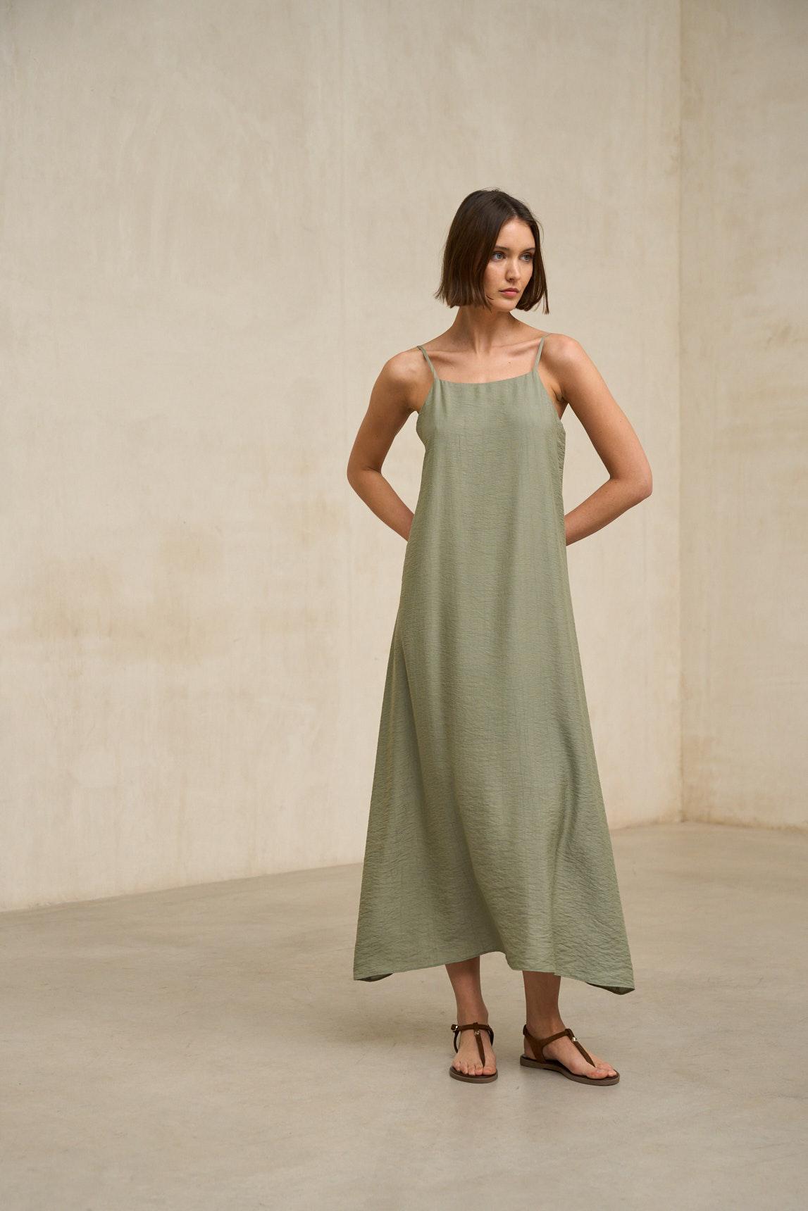 El Vestido Ilena verde salvia es un conjunto de dos piezas que se venden juntas, diseñado para aportar ligereza, movimiento y una elegancia natural con un enfoque contemporáneo.