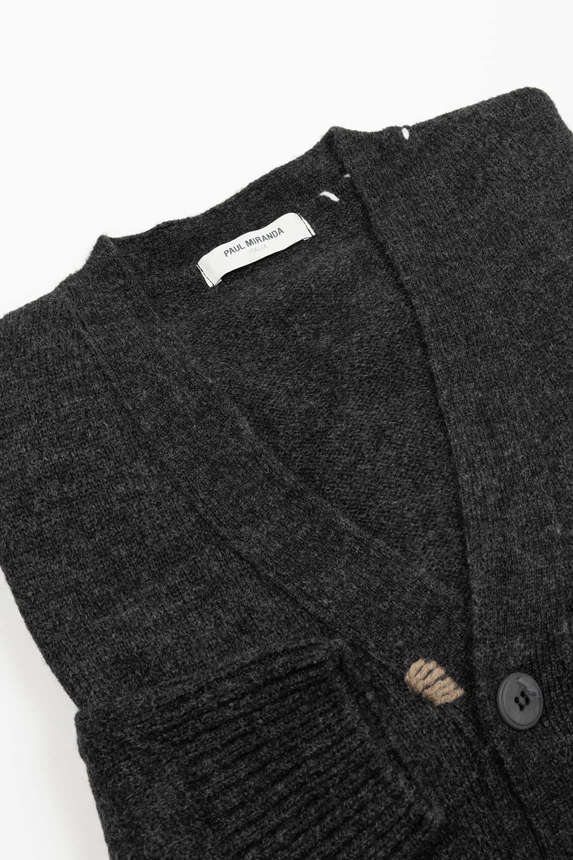 El cárdigan gris oscuro de Paul Miranda es una prenda versátil y refinada que combina tradición y modernidad. Diseñado con materiales de alta calidad, ofrece un tacto suave y una gran durabilidad. Sus detalles cosidos a mano en contraste aportan personalidad y un aire exclusivo, ideal para elevar tanto looks casuales como más formales.