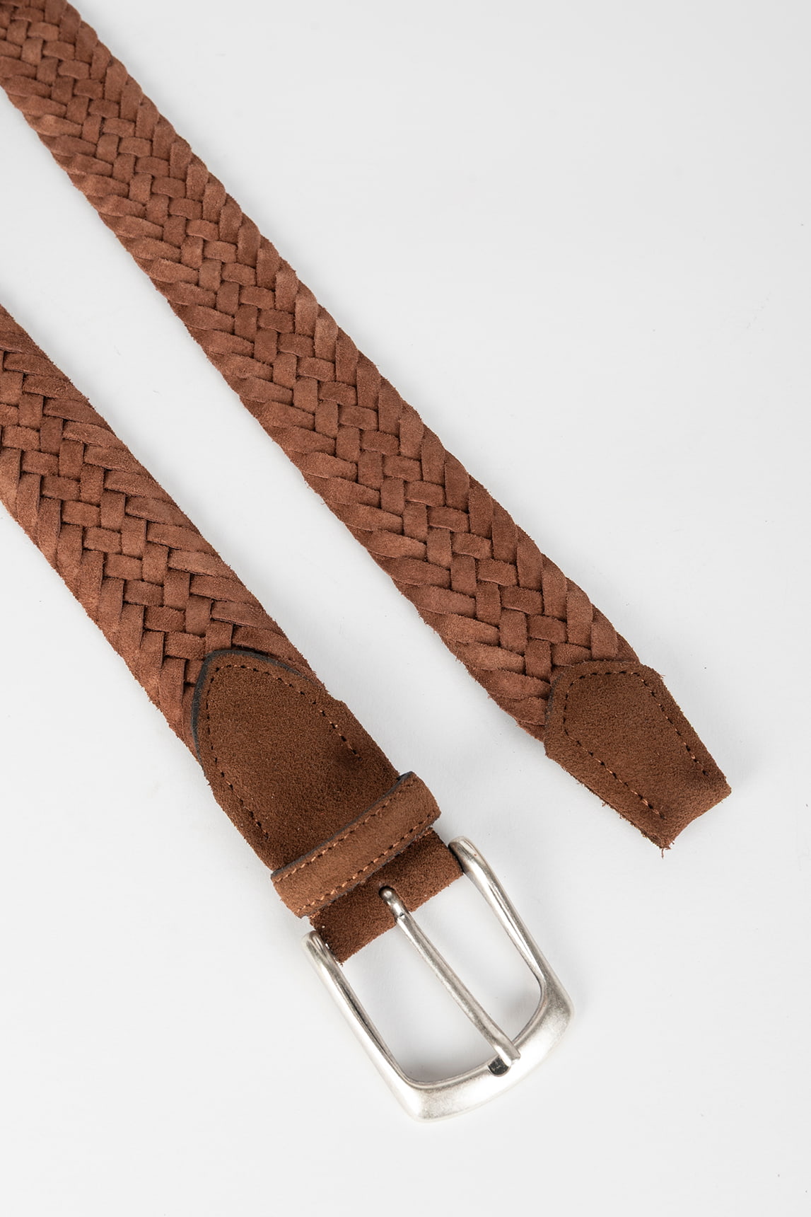 - Cinturón de hombre en serraje (ante) marrón canela.