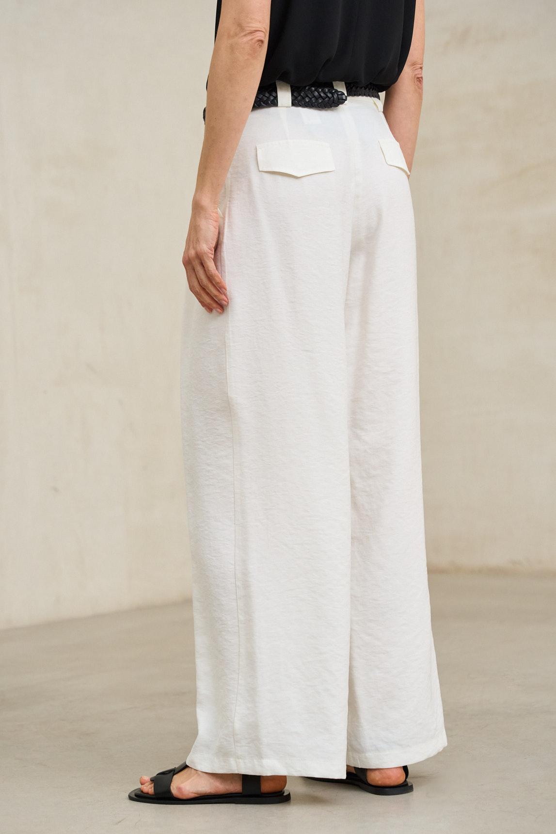 El tono blanco aporta frescura y luminosidad, facilitando combinaciones con tonos naturales, tierras y suaves. Pensado para un uso continuo, este pantalón se lleva con comodidad y naturalidad. Transmite sensación de calma y equilibrio, convirtiéndose en una pieza clave para construir looks claros, fluidos y coherentes a lo largo de la temporada.