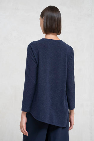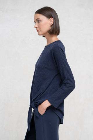 A camisola Ancona azul-marinho é uma peça versátil e feminina que se destaca pelo detalhe do laço lateral, acrescentando movimento e estilo ao seu look. Feito de um tecido macio e confortável, é perfeito para criar looks casuais e elegantes. O seu tom azul-marinho é intemporal e fácil de combinar, sendo um item essencial no guarda-roupa.