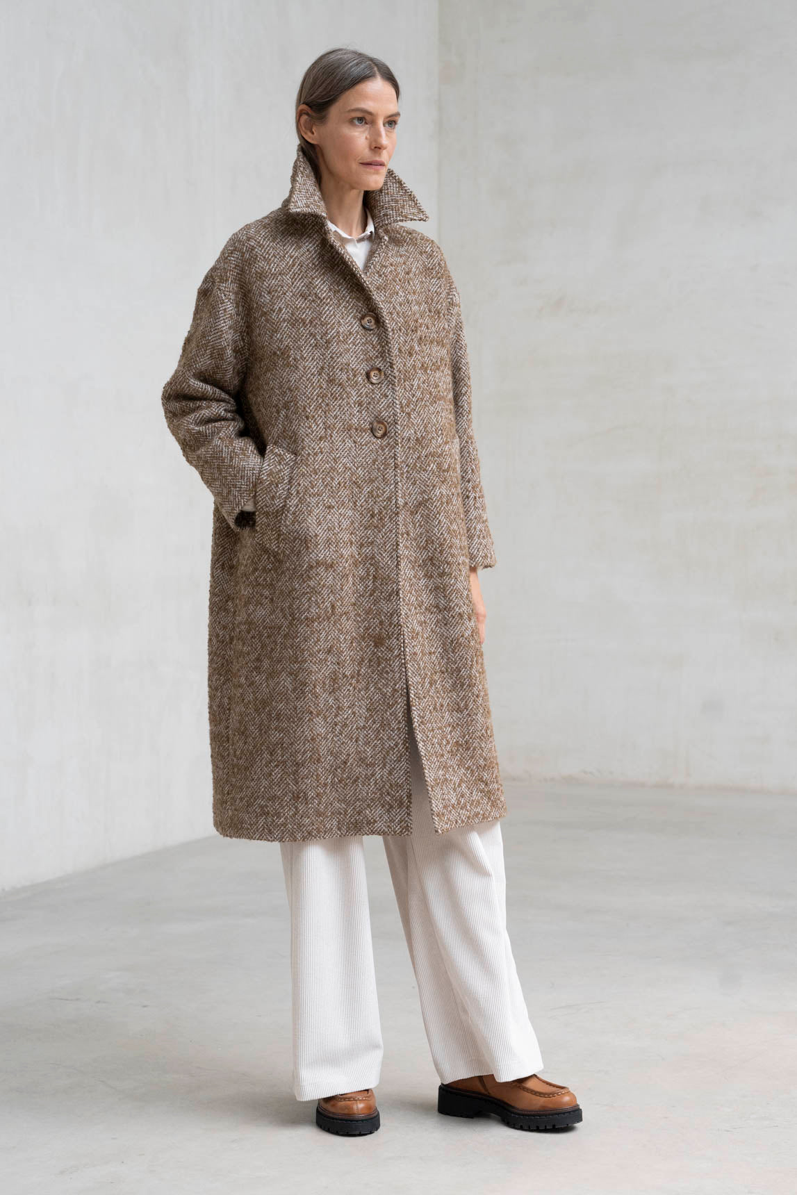 - Abrigo largo de corte recto.
