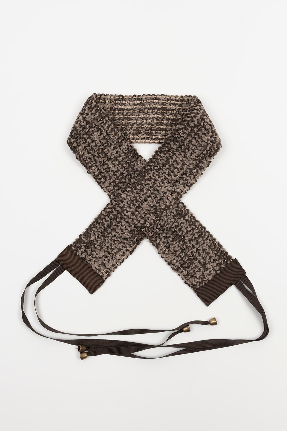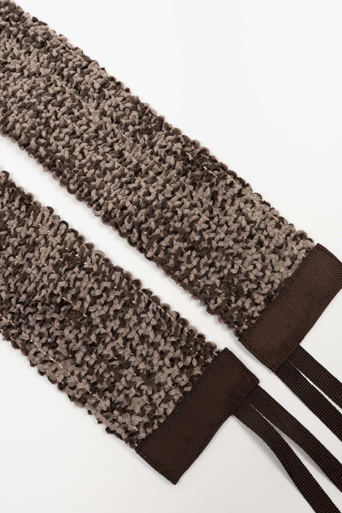 - Faixa bouclé texturada em tons de castanho e taupe.