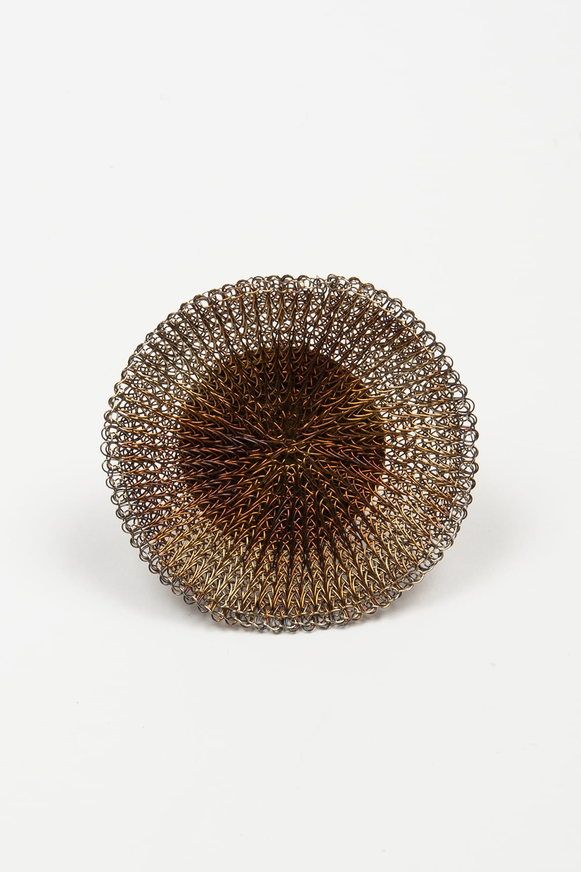 - Anillo artesanal elaborado en malla metálica con acabado bronce envejecido.