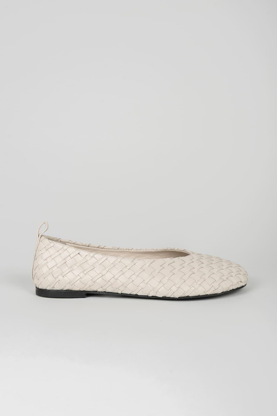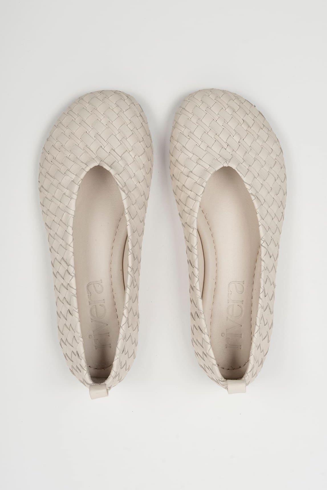 A sapatilha Nerisa Crudo destaca-se pelo seu delicado design entrançado, que confere textura e profundidade visual sem comprometer a leveza. A superfície entrelaçada cria um subtil jogo de luz e sombra que enriquece o acabamento e reforça o seu carácter artesanal. O seu design fechado e ligeiramente decotado realça o peito do pé, enquanto a estrutura flexível e a palmilha acolchoada promovem uma passada confortável e natural. A pequena alça na parte de trás facilita o calçar e acrescenta um detalhe discreto e funcional. O seu tom cru, luminoso e suave faz dele uma alternativa elegante ao branco ótico. Combina especialmente bem com linho, areia, bege ou tons pastel, funcionando igualmente bem com vestidos fluídos, calças de pernas largas ou looks monocromáticos. Uma sapatilha de ballet leve, versátil e intemporal, ideal para a primavera e o verão, que combina o conforto com a sofisticação descontraída. Esforçamo-nos por exibir as cores da forma mais precisa possível, mas podem variar ligeiramente em relação ao produto real.