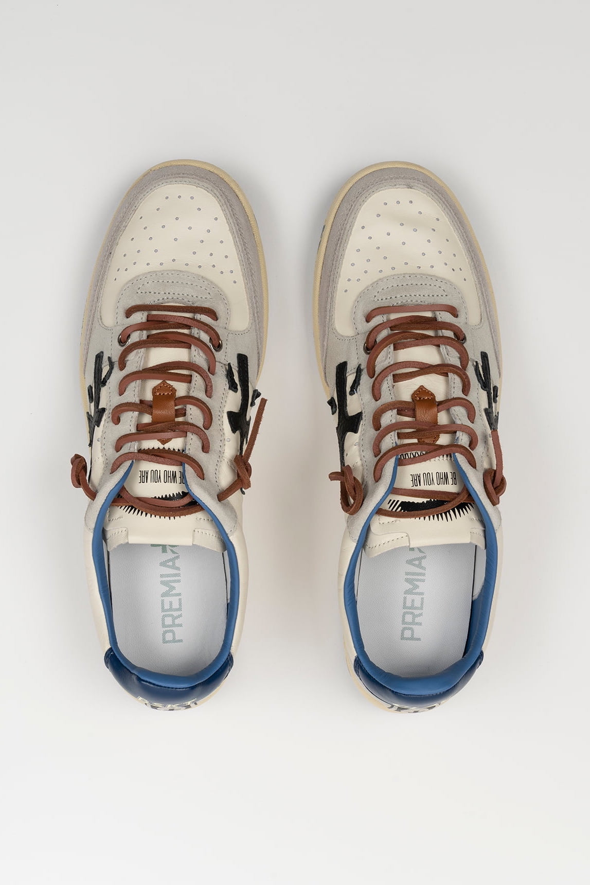Las Bskt Clay 7617 de Premiata llevan el basket clásico al día a día con piel suave, detalles en azul y cordones cuero que añaden personalidad. Perfectas para looks casual con vaqueros, chinos o sastrería relajada.